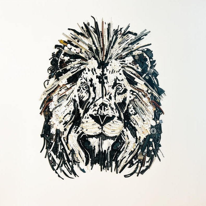 Bekijk African WomanKracht, trots en schoonheid komen samen in African Woman. Dit iconische portret is 100% gemaakt van gerecycled restmateriaal. Een ode aan vrouwelijkheid èn duurzaamheid — en één van mijn meest geliefde werken.