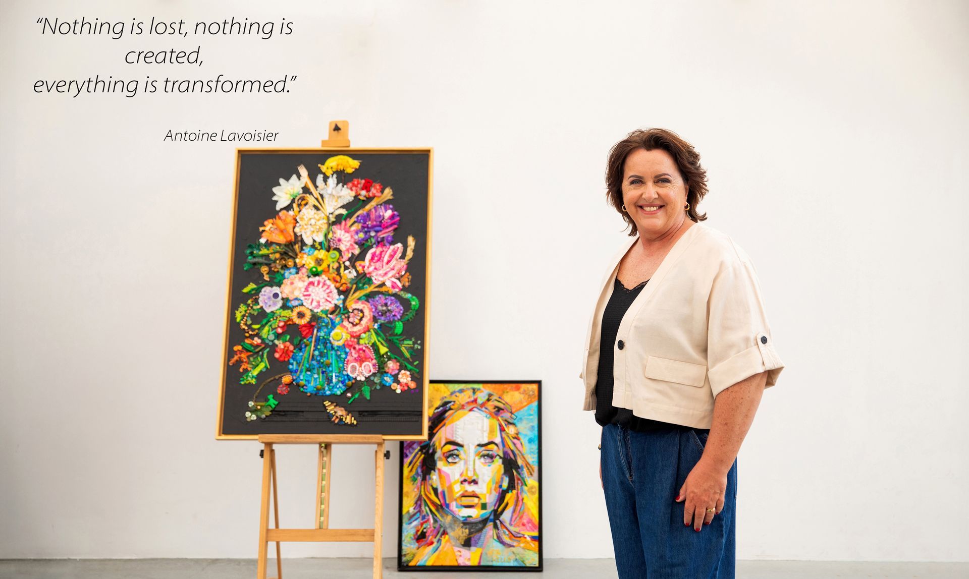 The materials I use for my artwork are found objects that I find on the street, on the beach or in forests & parks. But also plastic materials that people no longer use and bring to me and objects that I find in thrift stores. These materials include plastic caps, packaging for care products, old pens and felt-tip pens, buttons, zippers, old slippers, beads, electrical cables and telephone cords, plugs, broken plastic sunglasses, old children's toys and so much more!