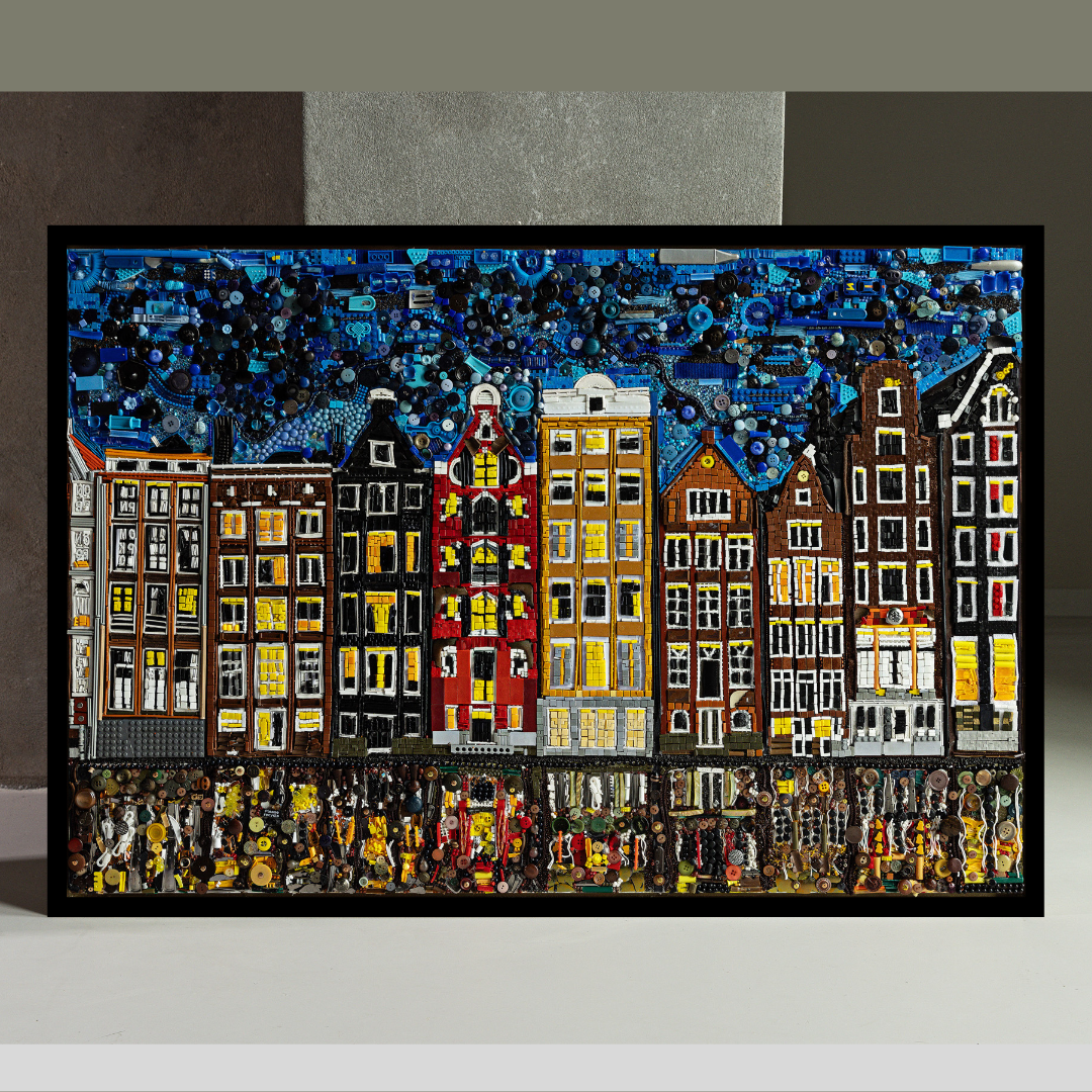 Ieder kunstwerk begint met een idee en eindigt met duizenden zorgvuldig geselecteerde stukjes restmateriaal. Het resultaat? Een unieke compositie die niet alleen visueel verrast, maar ook laat zien hoe schoonheid ontstaat uit hergebruik.