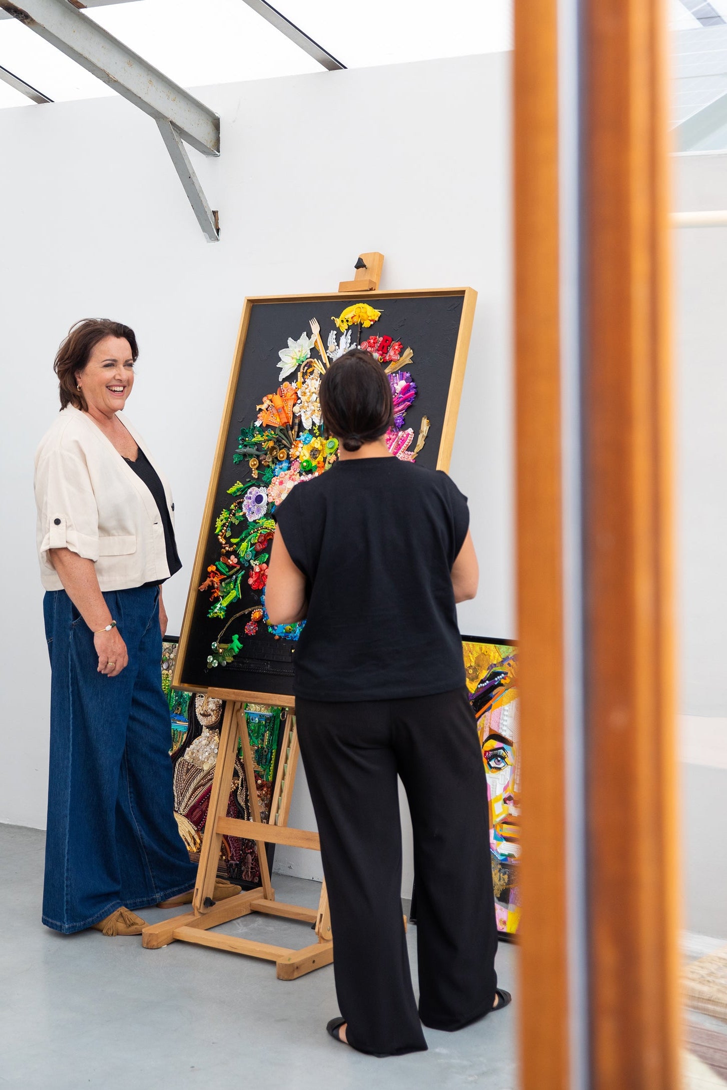 Bekijk African WomanKracht, trots en schoonheid komen samen in African Woman. Dit iconische portret is 100% gemaakt van gerecycled restmateriaal. Een ode aan vrouwelijkheid èn duurzaamheid — en één van mijn meest geliefde werken.