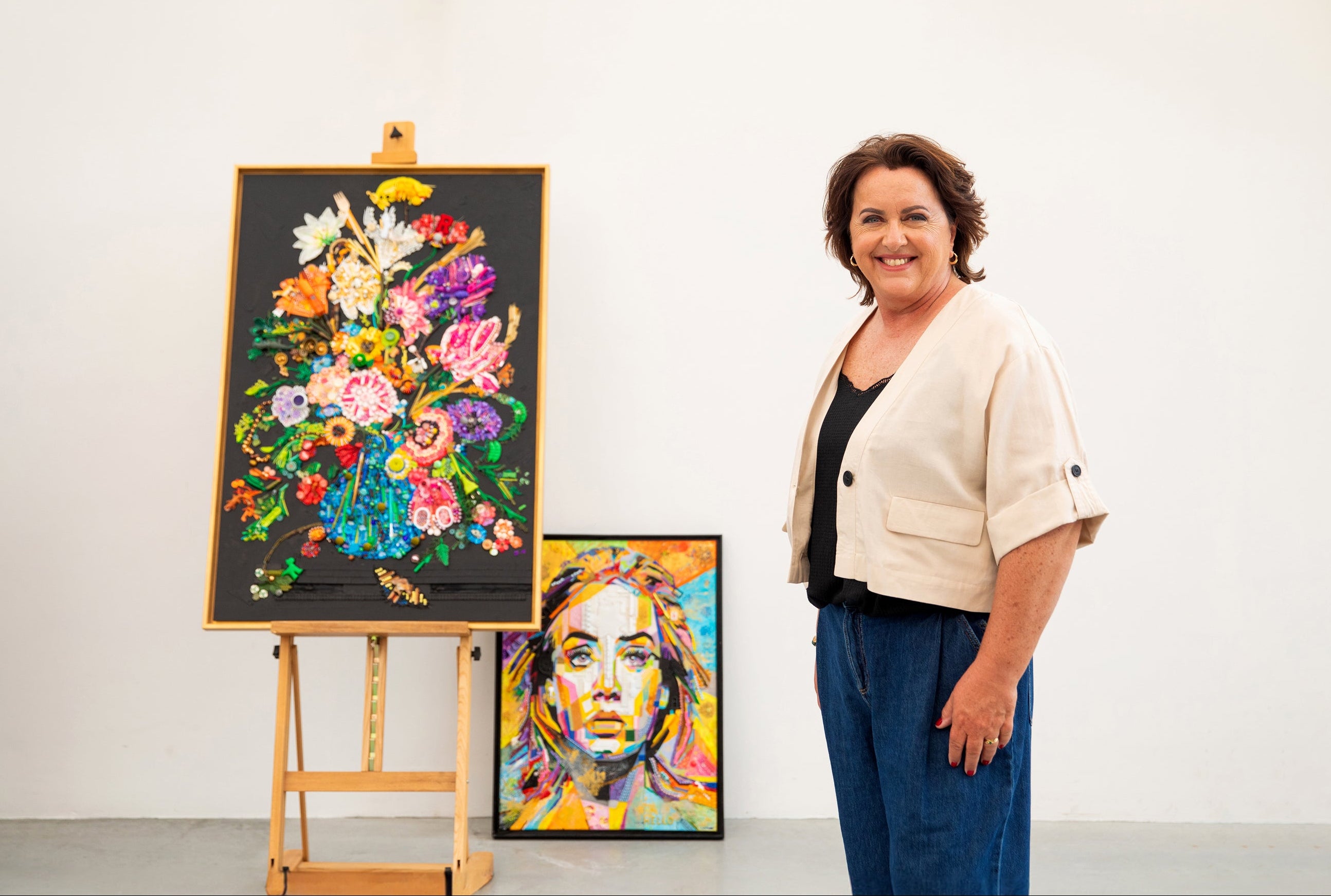 Ik geef een tweede leven aan duizenden restmaterialen. Wat ooit afval was, wordt in mijn studio omgetoverd tot kleurrijke kunstwerken met een verhaal.