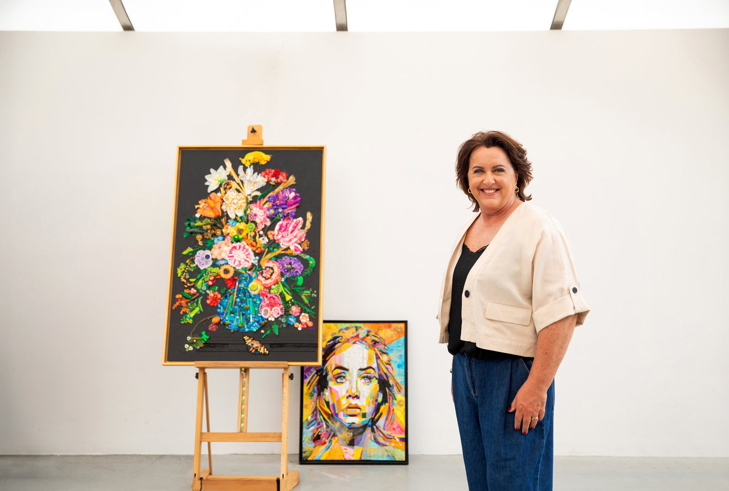 Ik geef een tweede leven aan honderden verschillende soorten restmateriaal. Wat ooit afval was, wordt in mijn studio omgetoverd tot kleurrijke kunstwerken met een verhaal.